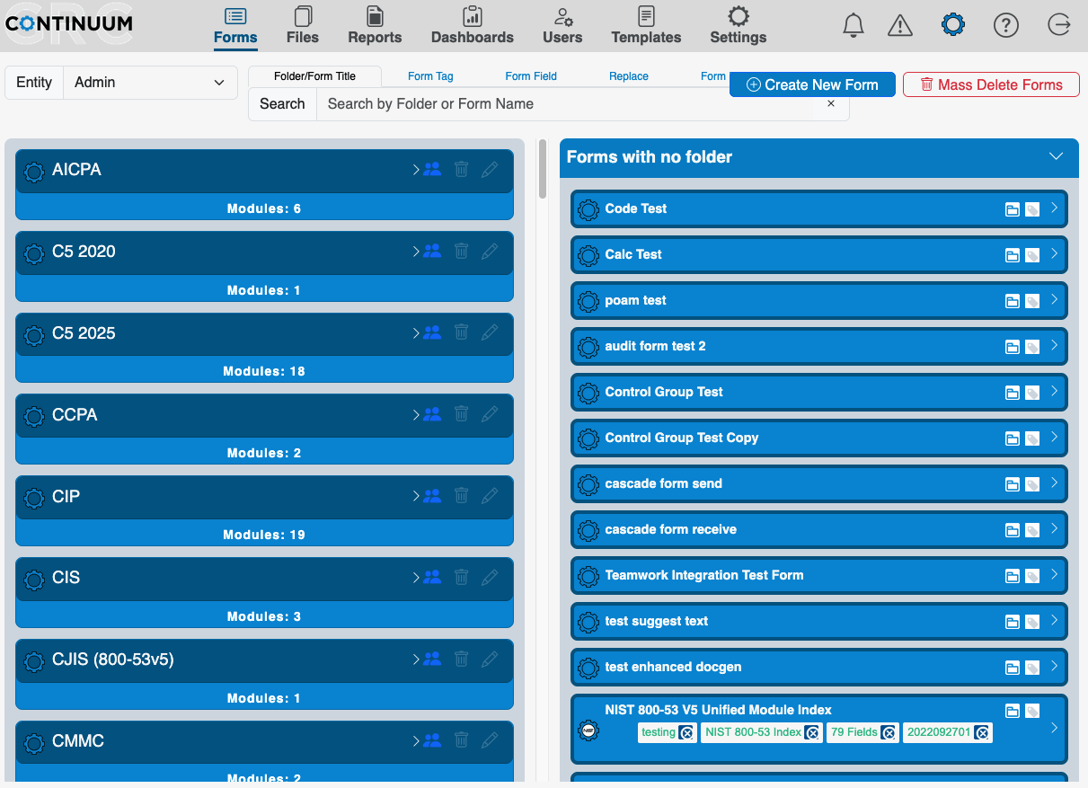 Forms are critical tools for capturing and validating an organization’s compliance data. Many organizations and agencies have used spreadsheets and free-standing documents to capture compliance information. These lacked an excellent way to aggregate and report on data and were difficult to keep organized.