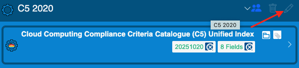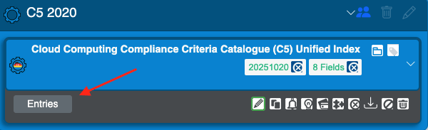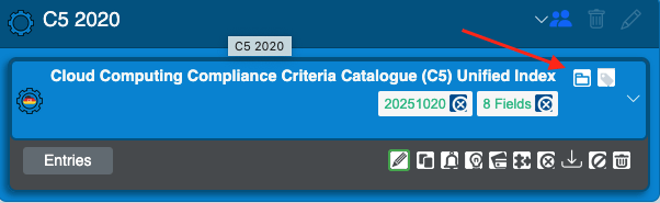 Clicking a name expands that folder to view the available forms within it, along with icons to edit and delete them. Also, if there are entries marked as completed, you will see an overview of the controls and which ones have been addressed (highlighted in green).