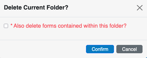 Warning: Deleting a folder is a permanent action that cannot be undone. The forms in the folder will not be deleted, but moved out of the folder and displayed with the other unorganized forms.