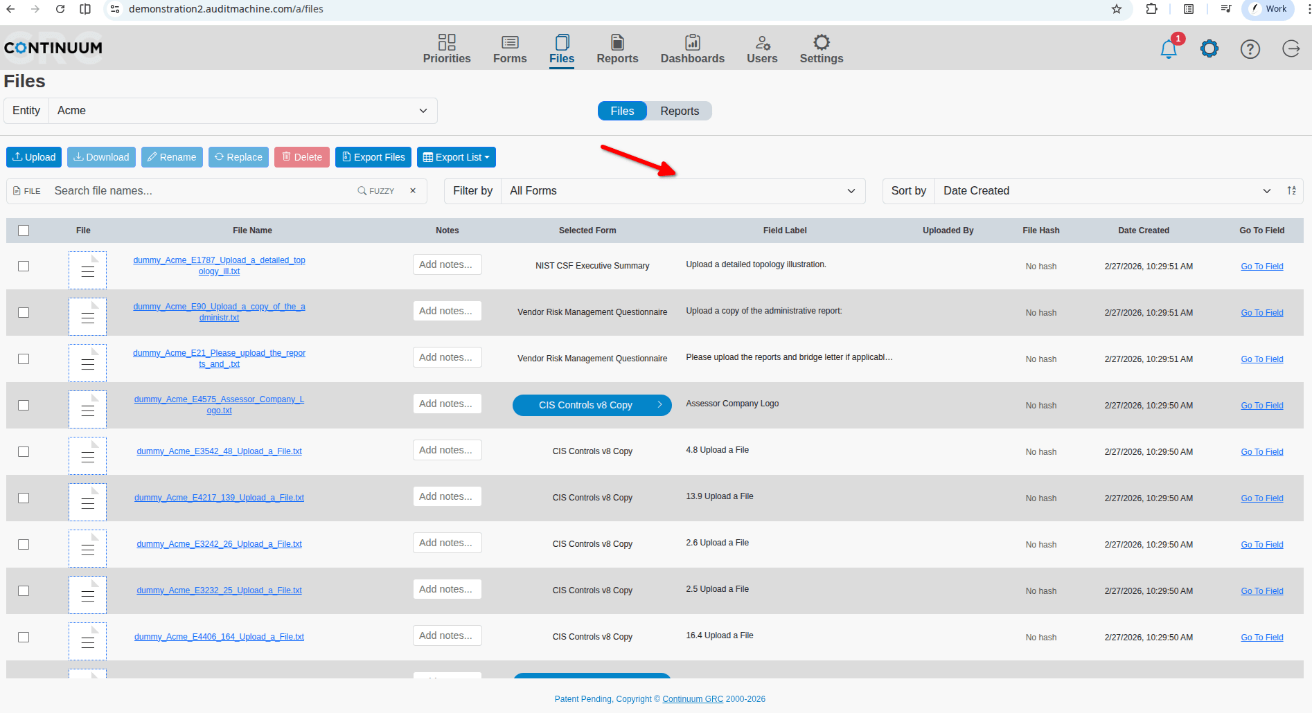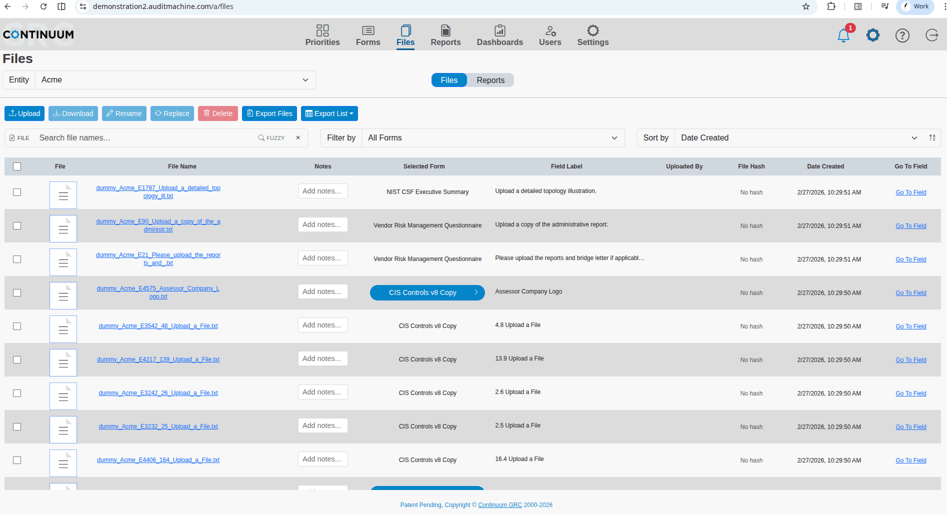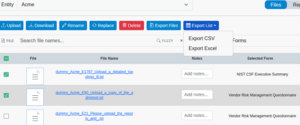 The audit and evaluation process depends on documentation and evidence to show that an organization has achieved compliance with a control. In ITAM much of that evidence consists of files uploaded into the appropriate fields in a form. These files may be images, text, affidavits, spreadsheets, or almost any other type of file that conveys the information needed. The File Manager is a convenient way to see the files uploaded by an entity and interact with those files.