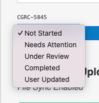- Not Started: The current control hasn't been implemented or recorded.