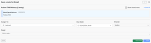 Clicking the Save Note button saves the details and creates the Action ITAM. Clicking on Close will close the form without saving your changes.
